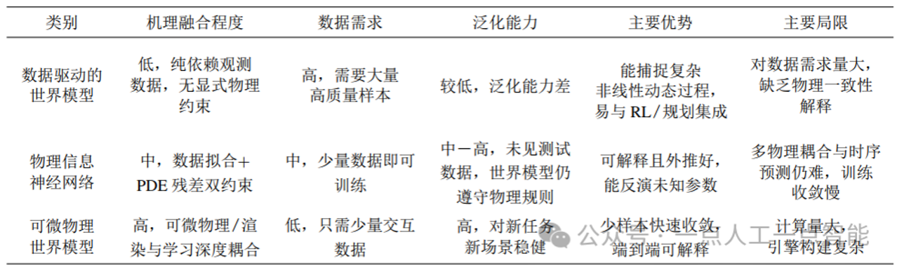 表7 不同世界模型的特性对比